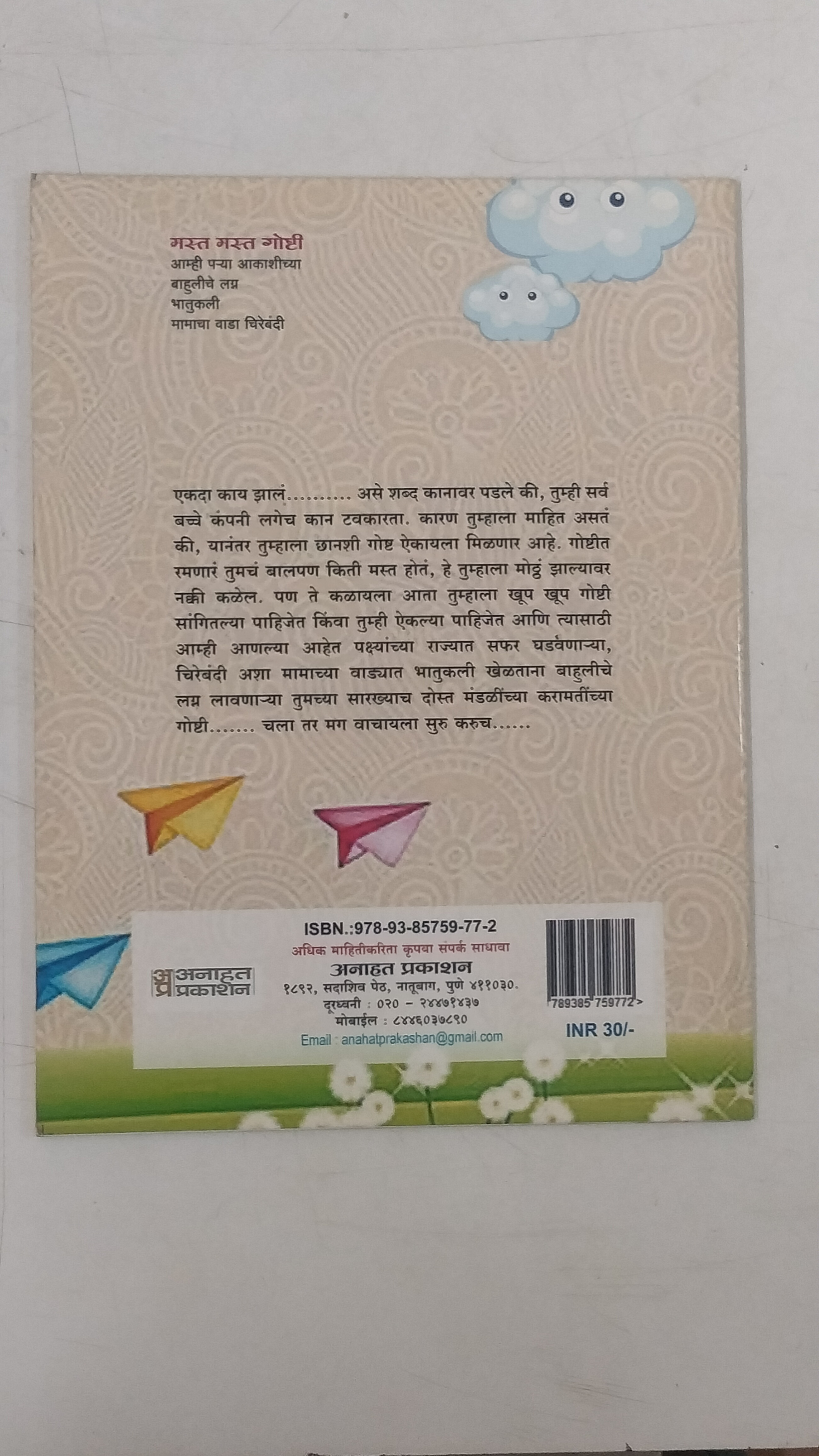 Mast Mast Goshti is a Marathi children's story book that presents interesting stories based on daily life and cultural experiences. Through simple narratives and relatable characters, the book helps young readers understand values such as kindness, curiosity, and learning from everyday situations.